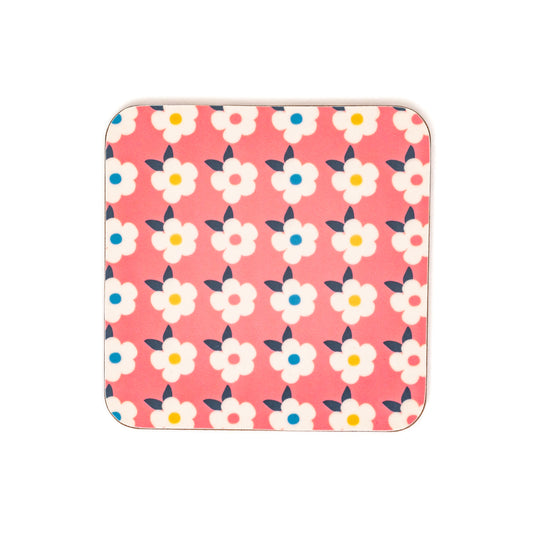 Retro Floral Rose Pink Gift Set: Enamel Cup, Tin Mug, Coaster, Pin Badge, Tea Towel