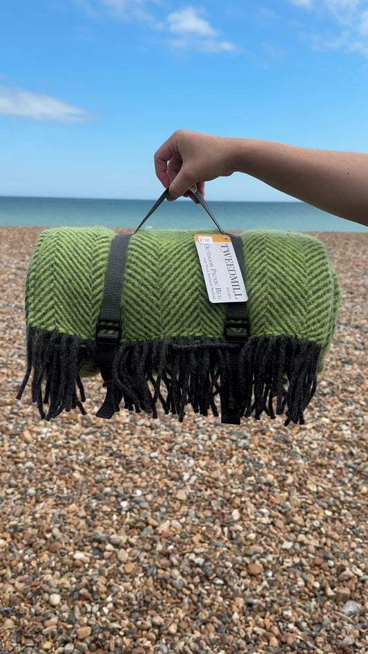 Zest Lime Green/Grey Herringbone Pure New Wool Picnic Rug