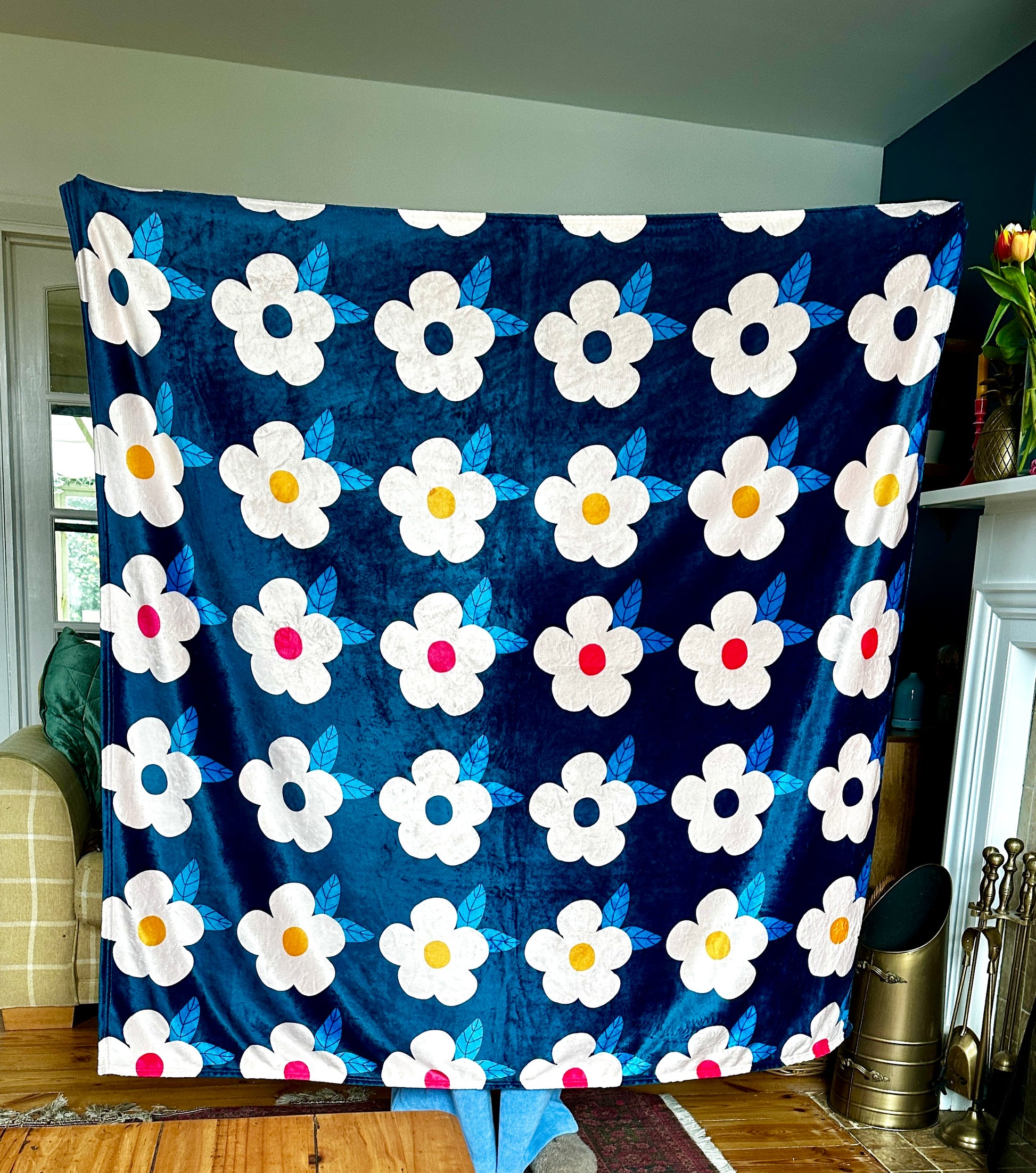 Retro Floral Midnight Navy Blue Große Fleecedecke/Überwurf – Emaillehappy